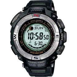 "Combining the best elements of Pathfinder Sea Pathfinder, Casio introduces the best Pathfinder to date. The Multi-Band 5 Atomic Solar Pathfinder steps beyond its core competencies of Digital Compass, Altimeter, Barometer and Thermometer by adding Tide and Moon Graphs and Moon Age Data. And if that wasn't enough, it's 200M Water Resistant! Features Multi-Band Atomic Timekeeping (US, UK, Germany, Japan) Receives time calibration radio signals which keep the displayed time accurate Auto receive function (up to 6 times per day) Manual receive function Signal: US WWVB, UK MSF, Germany DCF77, Japan JJY40/JJY60 Frequency: US 60kHz, UK 60kHz, Germany 77.5kHz, Japan 40/60kHz Tough Solar Power 200M Water Resistant Tide Graph (based on a combination of preset and user input data) Moon Data (moon age based on current date or user input data, moon phase graph) Digital Compass 16 points of measurement Measuring range: 0 to 359 degrees Measuring unit: 1 degree Bearing Memory Price: :191.44